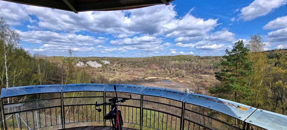 Entlang der Dieburger Strasse bringt einen der schnurgerade Radweg vorbei zum Abzweig Richtung Grube Messel. Diese ehemalige Ölschiefergrube (und spätere Anwärter als Kreisdeponie; erst 1995 als Weltkulturerbe endgültig davor bewahrt) hat zahllose und bedeutende fossile Fundstücke hervorgebracht. Heute gibt es Führungen durch das Grubengelände. Das angeschlossene Museum fügt sich schön in die Landschaft ein. Eine frei zugängliche Aussichtskanzel (sofern das Museum geöffnet ist) bietet eine gute Sicht auf die Grube.
