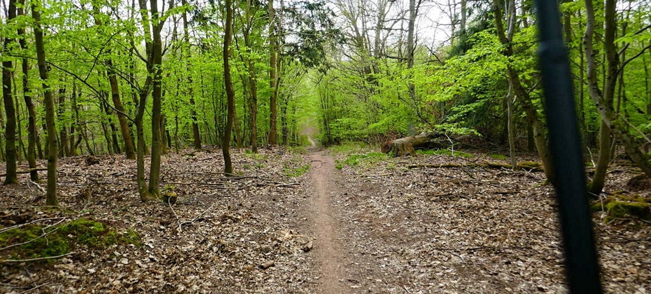 Start ist rechts am Parkplatz am Ortsausgang von Ober-Ramstadt Richtung Roßdorf. In flotter Fahrt geht es kurz hinab zur L3104, um dann am Waldrand entlang hinauf Richtung Dippelshof zu führen. Der angenehm zu fahrende Ackerweg wird danach zum breiten Waldweg. Vorbei an der Darmbachquelle geht es im offenen Wald hinab zu mehreren Firschzuchtweihern. Schön folgt der Weg nun dem Darmbach, der sich links in seinem bisweilen von Tümpel begleiteten Bett bis zum Vivarium von Darmstadt (Zoo) entlang windet.