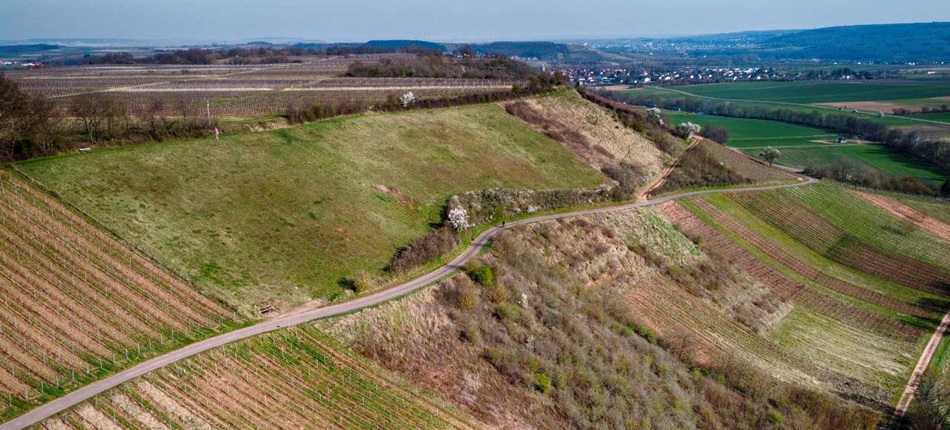 Erneut quert man den Gräfenbach und fährt alsbald auf der anderen Talseite weitab der Nebenstrasse in den Ort Wallhausen. Nach Norden blickend bedecken nun endlose Weinberge die niedrigen Hänge des Tals. Die geschützte Lage und die Ausrichtung nach Süden ermöglich hier einen ertragreichen Anbau.
