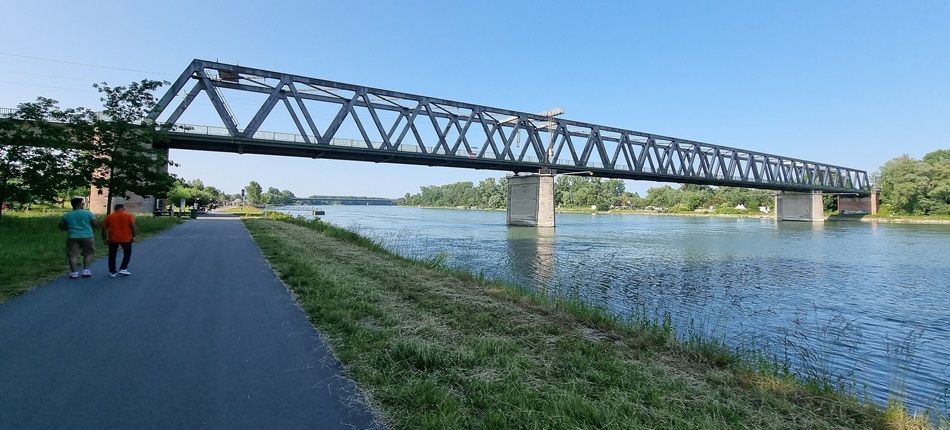 Einen noch weiteren Bogen fährt man um den Altrheinarm der „Eislache“. Die Qualität der Strassendecke verlockt selbst Inliner dazu, hier entlang zu skaten – fernab jeden anderen Verkehrs.