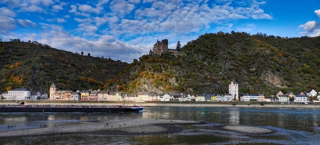 Nun taucht man ein in das von steilen Talwänden beherrschte Durchbruchstal, dass der Rhein in das Rheinische Schiefergebirge gegraben hat. Von nun an wechseln sich stetig die Burgen rechts- und linksrheinisch ab.