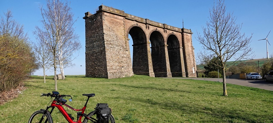 So ist man ganz froh, wenn der Weg schließlich mit einer schönen Abfahrt wieder hinab führt nach Marnheim. Das alte Brückenstück der ehemaligen Schmalspur-Eisenbahn wird jeden zu einem kurzen Stopp verleiten, steht es doch markant am Dorfeingang.